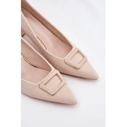 Dámské lodičky na širokém podpatku s ozdobnou sponou Seriva – béžové