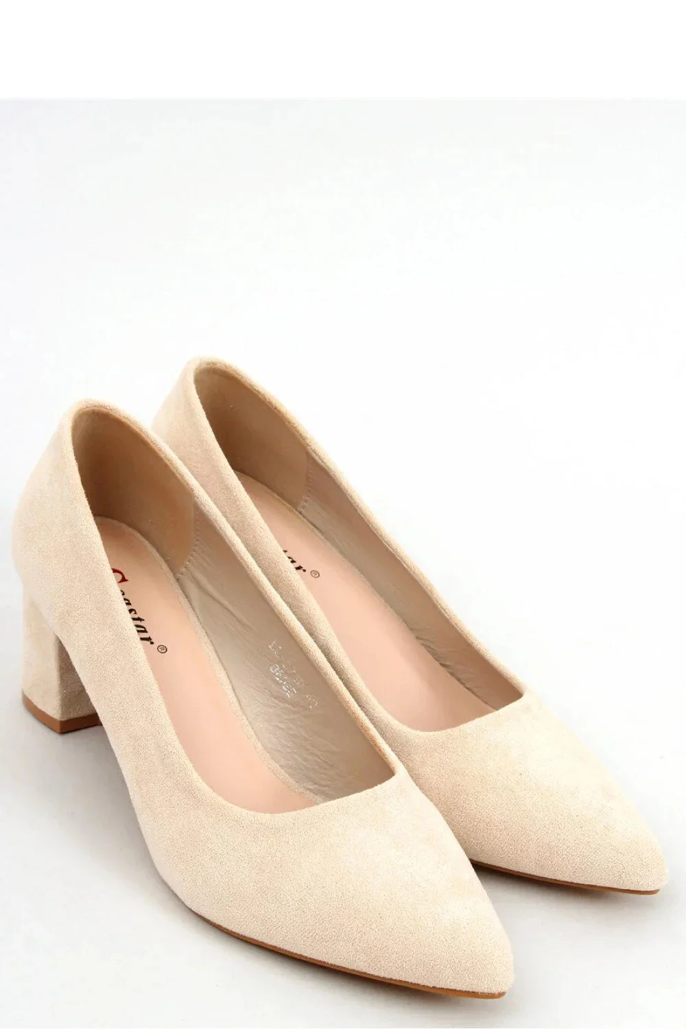 Dámské lodičky na sloupkovém podpatku model 18470132 světle béžová - SEASTAR