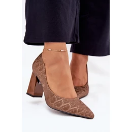 Dámské lodičky na sloupkovém podpatku model 21780731 Hnědá vzor - VINCEZA