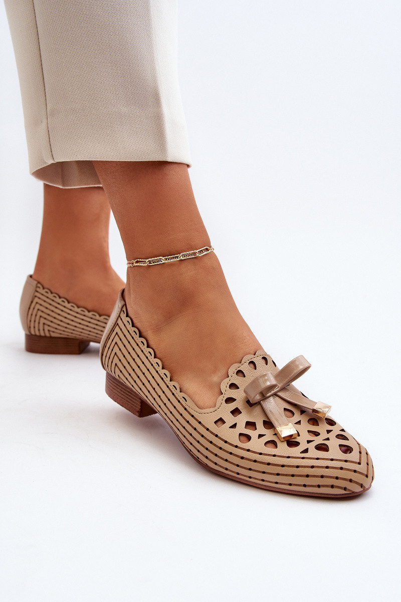 Dámské lodičky s mašlí v béžové barvě Nestavia