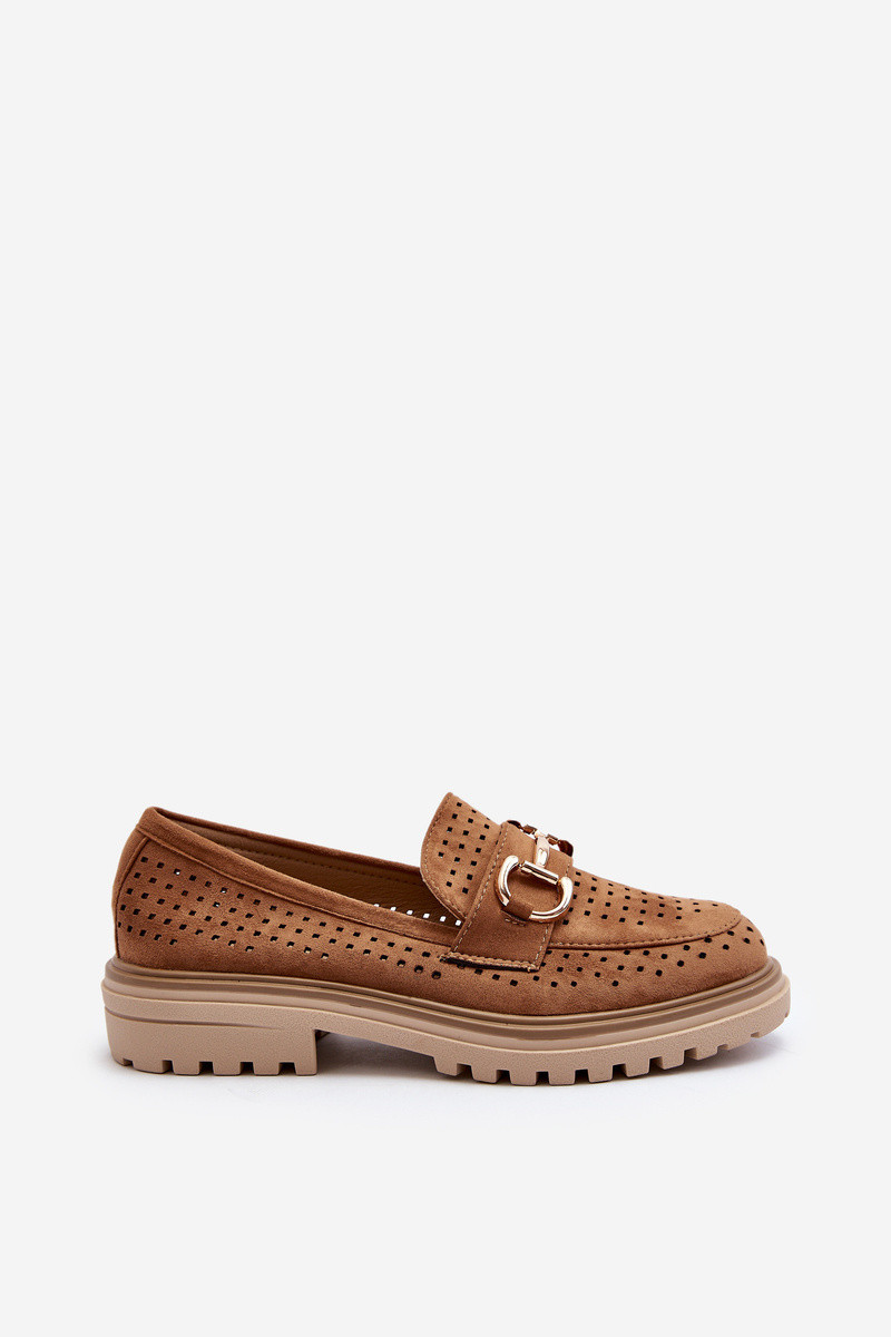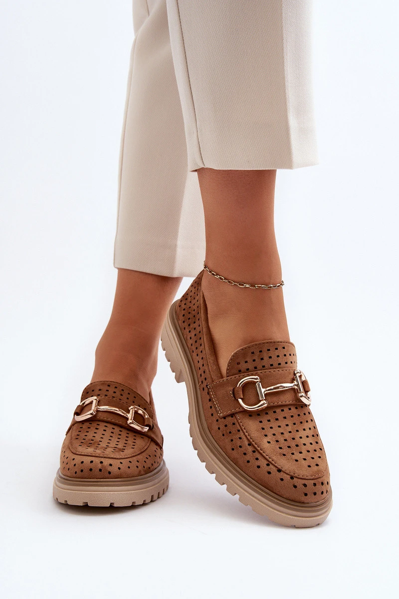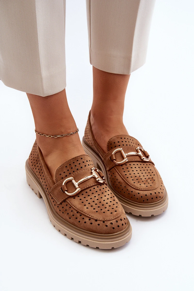 Dámské mokasíny s prodyšným vzorem vyrobené z ekokože vypadají elegantně a jsou skvělým doplňkem k jarně letním stylizacím. Ozdoba umístěná vpředu jim dodává půvab a eleganci. Usazeny na plochém podpatku a podrážce z pryžového materiálu. Zakulacené špičky. Ekokožená stélka je měkká a pohodlná. Určitě byste je měla mít! Při výběru velikosti se řiďte tabulkou velikostí.