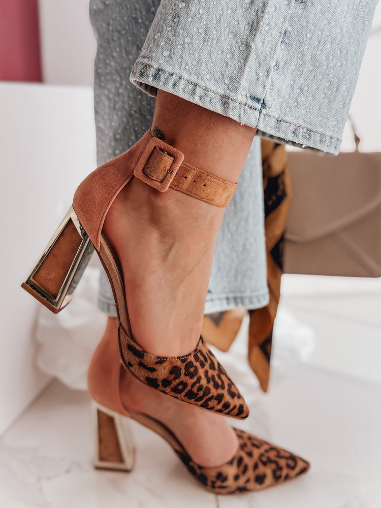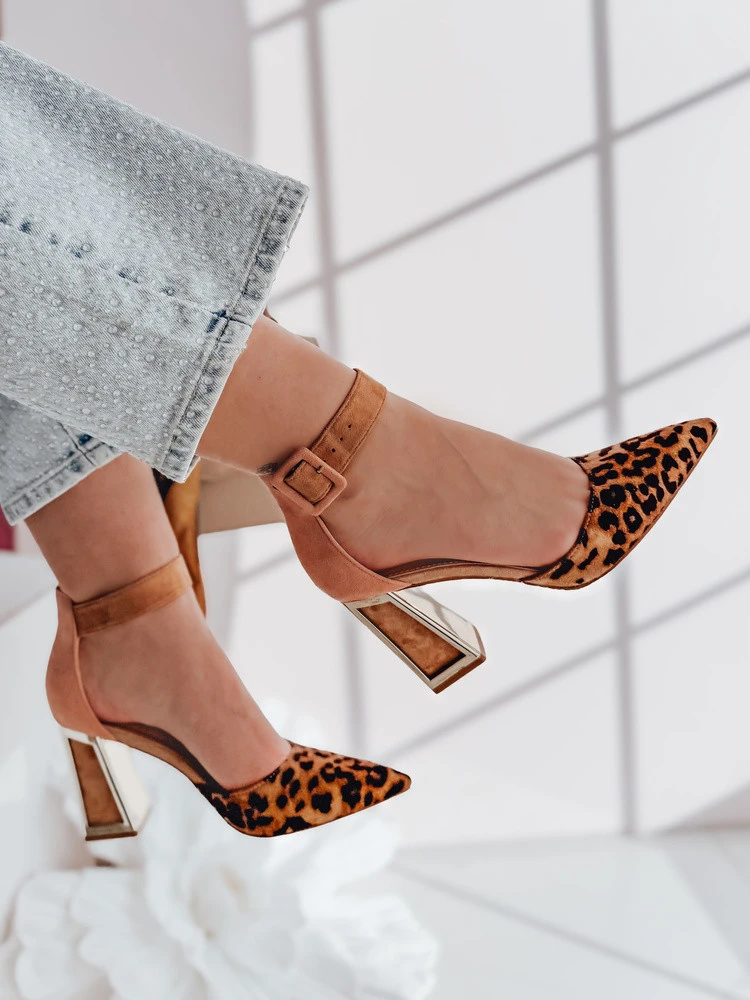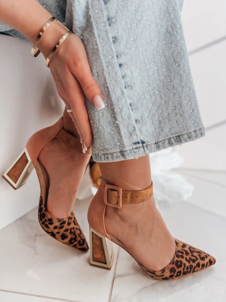 Stylové lodičky na jehlovém podpatku, které dodají módní nádech každému outfitu. Model je vyroben z látky a semišové ekologické kůže. Stélka je z ekologické kůže. Boty se zapínají páskem u kotníku. Špičatý nos. Ideální pro ženy, které ocení originální styl a elegantní doplňky.