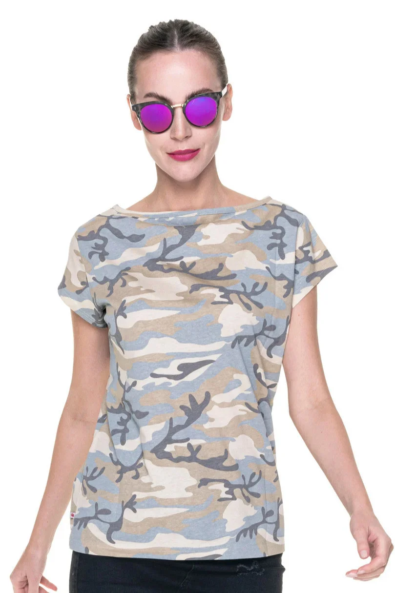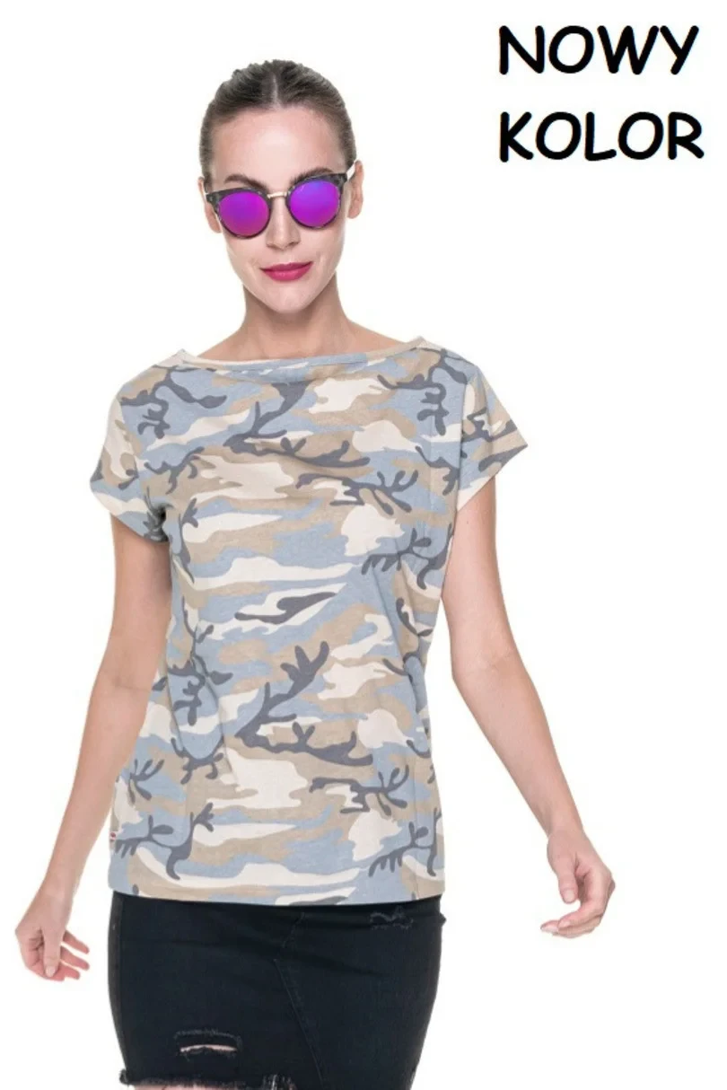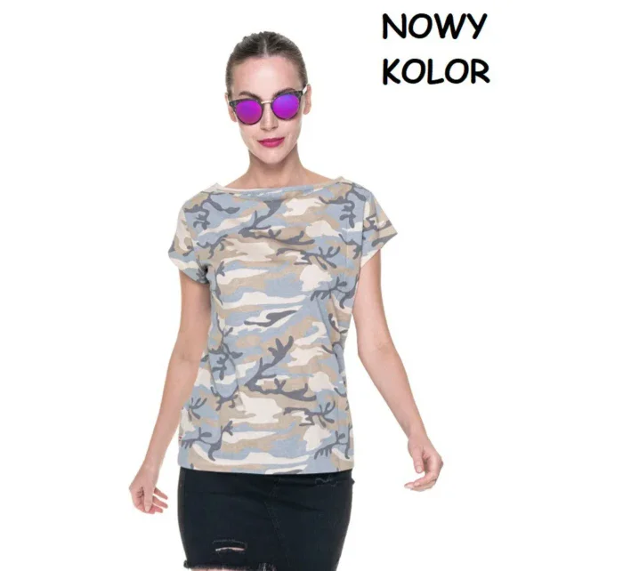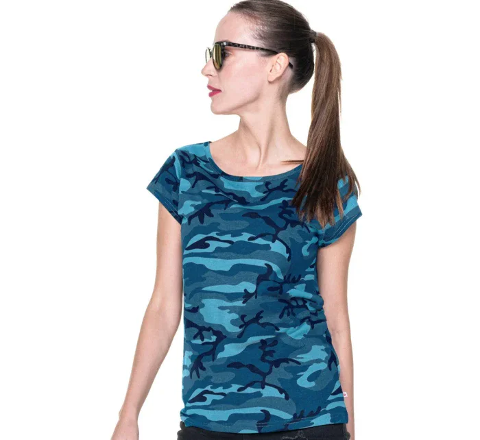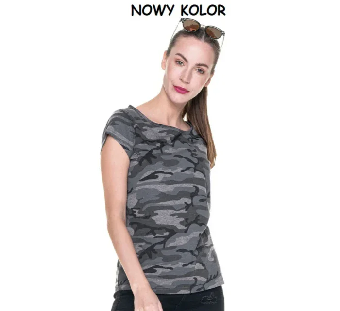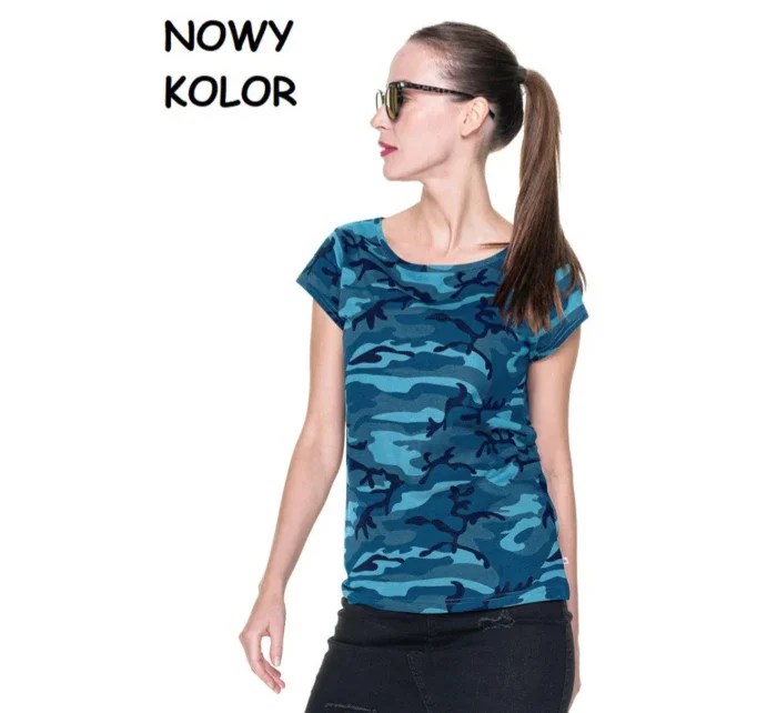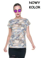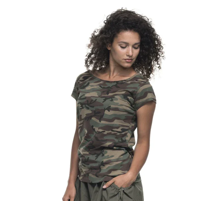 Dámské tričko ušité z hladkého materiálu single jersey s tištěným maskáčovým vzorem. Tričko má dvojté švy a pevné lem. Gramáž: 170g/m2. Složení: 100% poločesaná bavlna.