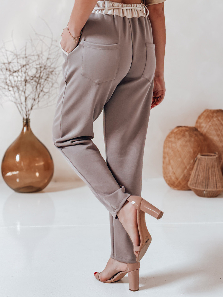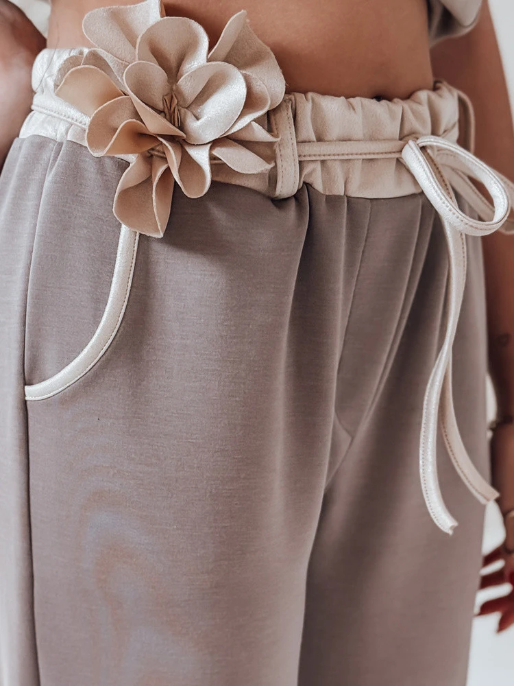Dámské máslové kalhoty s květinami LEGISSA tepláky cappuccino FashionStreet UY2407