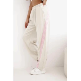 Dámské máslové kalhoty z viskózy s lampasem béžové
