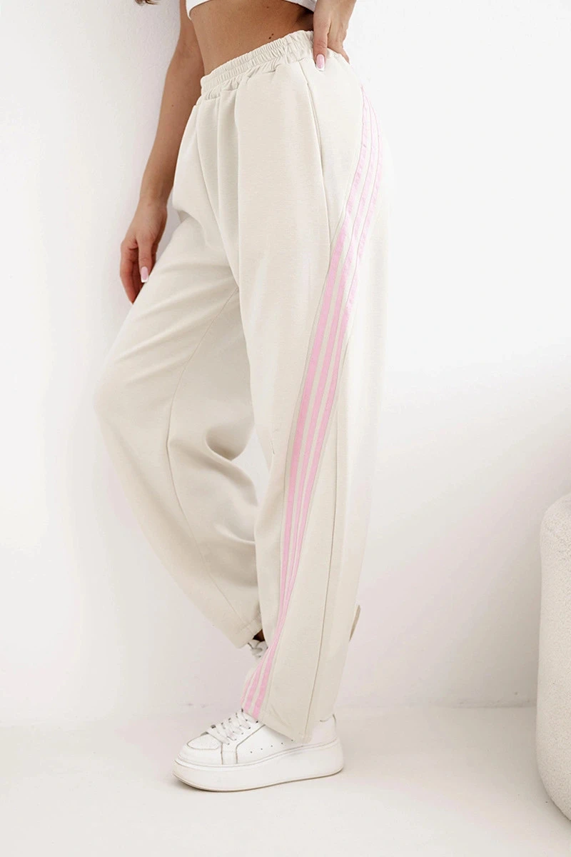 Dámské máslové kalhoty z viskózy s lampasem béžové