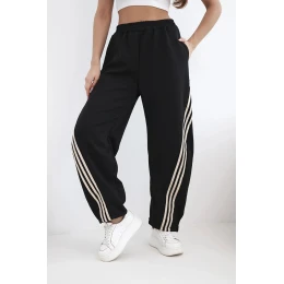 Dámské máslové kalhoty z viskózy s lampasem černé + béžové