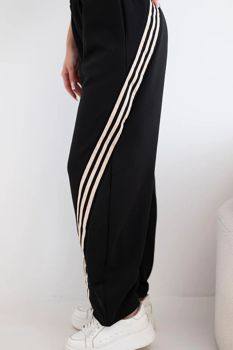 Dámské máslové kalhoty z viskózy s lampasem černé + béžové