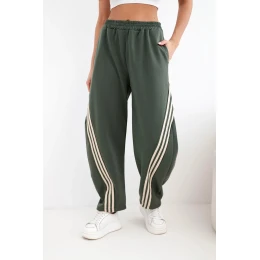Dámské máslové kalhoty z viskózy s lampasem khaki
