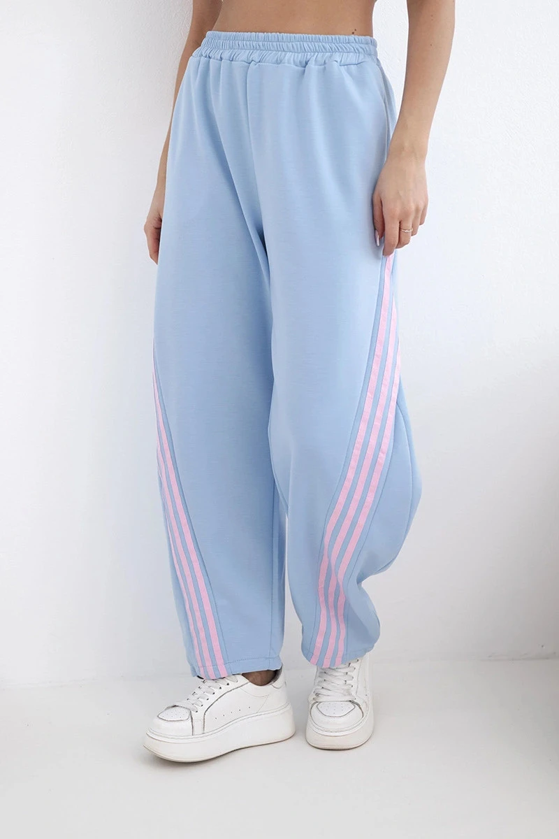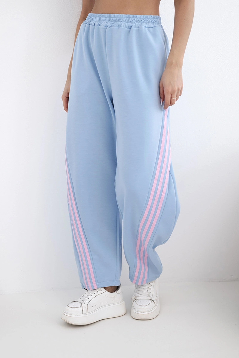 Dámské máslové kalhoty z viskózy s lampasem modré