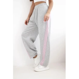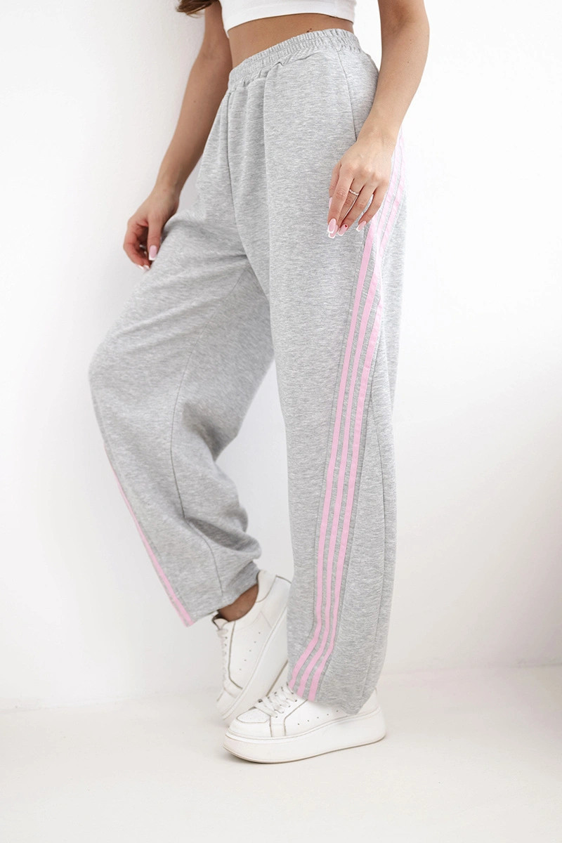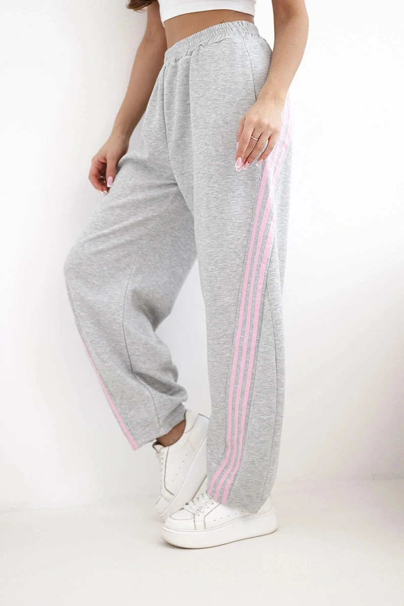 Dámské máslové kalhoty z viskózy s lampasem šedé