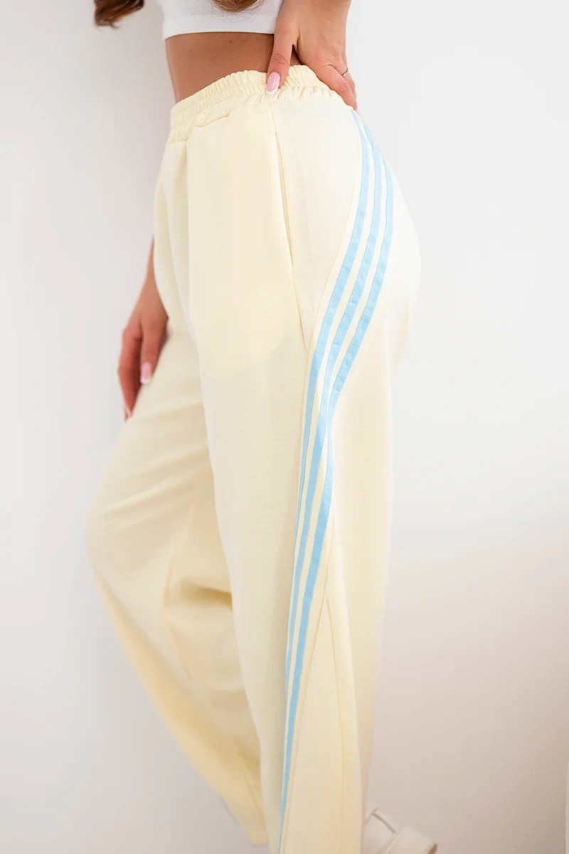 Dámské máslové kalhoty z viskózy s lampasem žluté