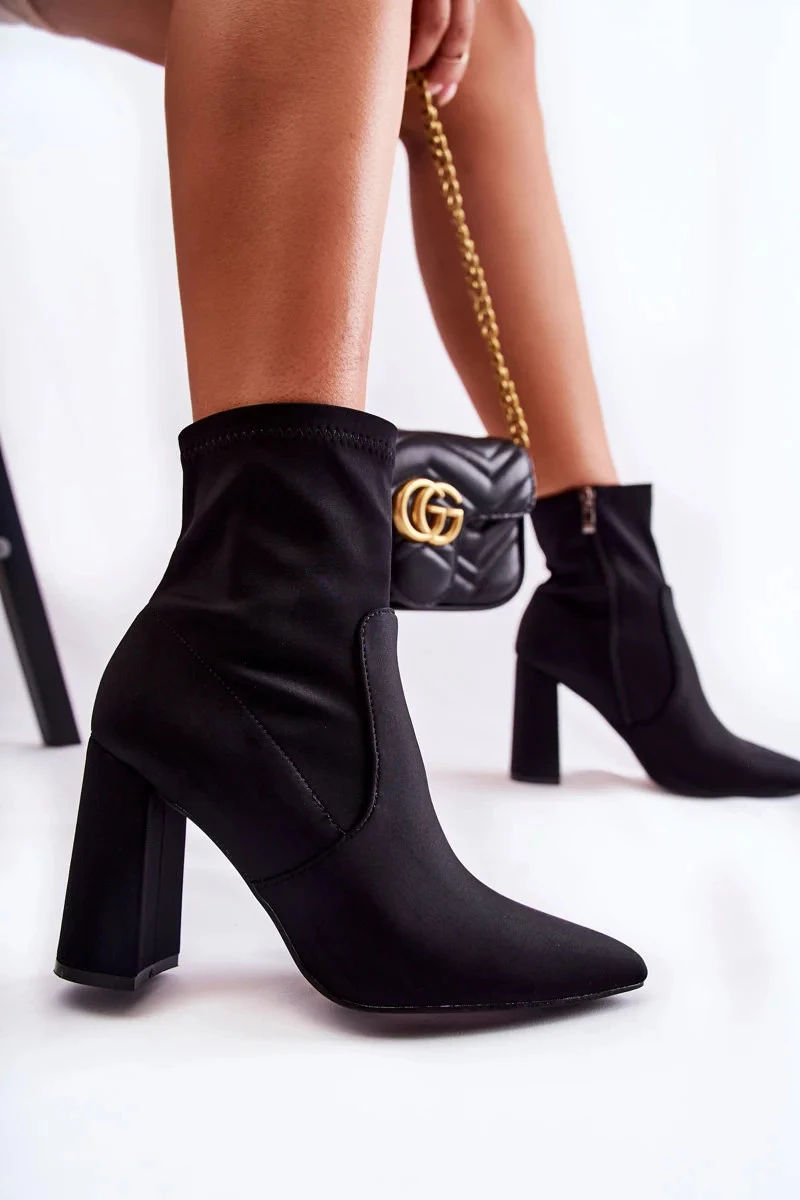 Krásné kozačky s vysokým svrškem ke kotníkům. Tyto boty mají vyztuženou patu. Špičatá špička. Zapínání na zip na boční straně svršku. Pohodlná stélka je vyrobena z eko kůže. Jsou osazeny na masivním podpatku v podobě sloupku. Jsou ideální pro elegantní i klasické stylizace. Určitě se podívejte i na další modely bot! Při výběru velikosti použijte tabulku velikostí.