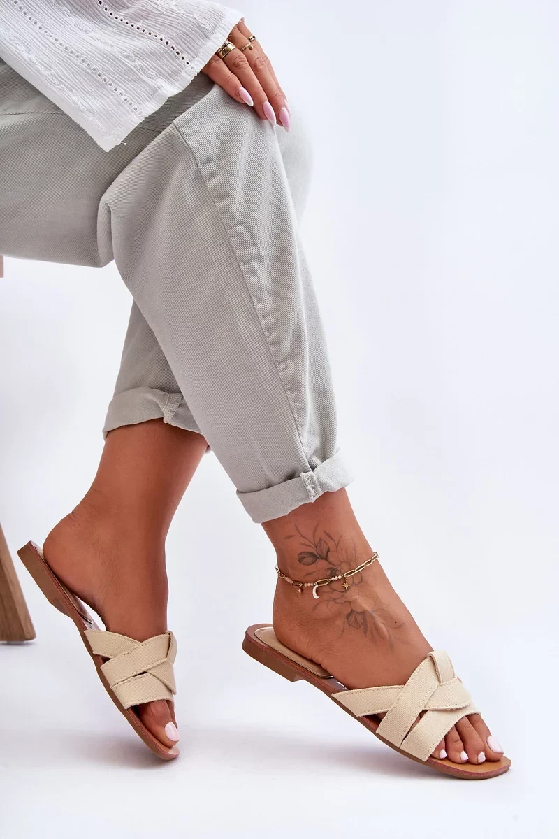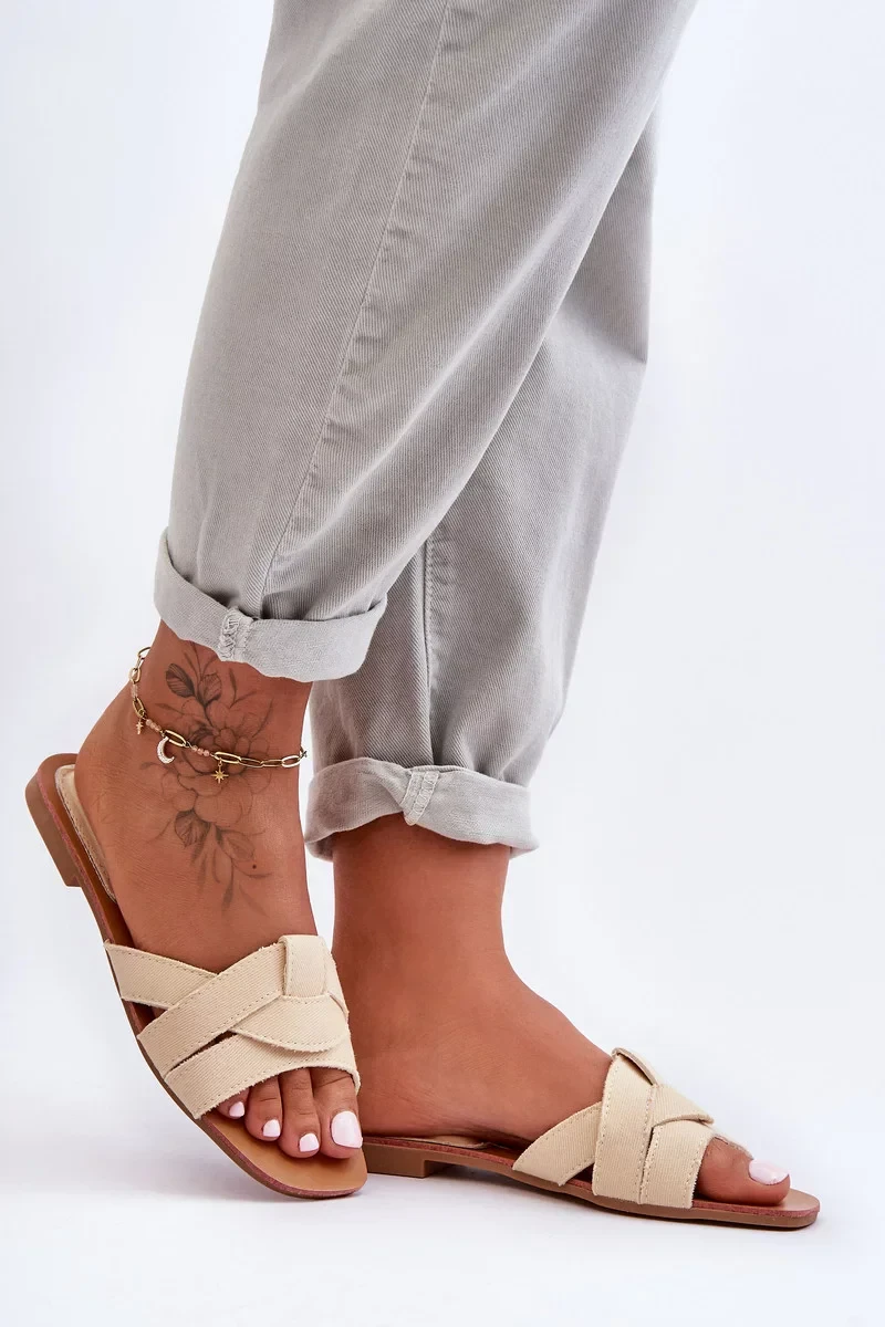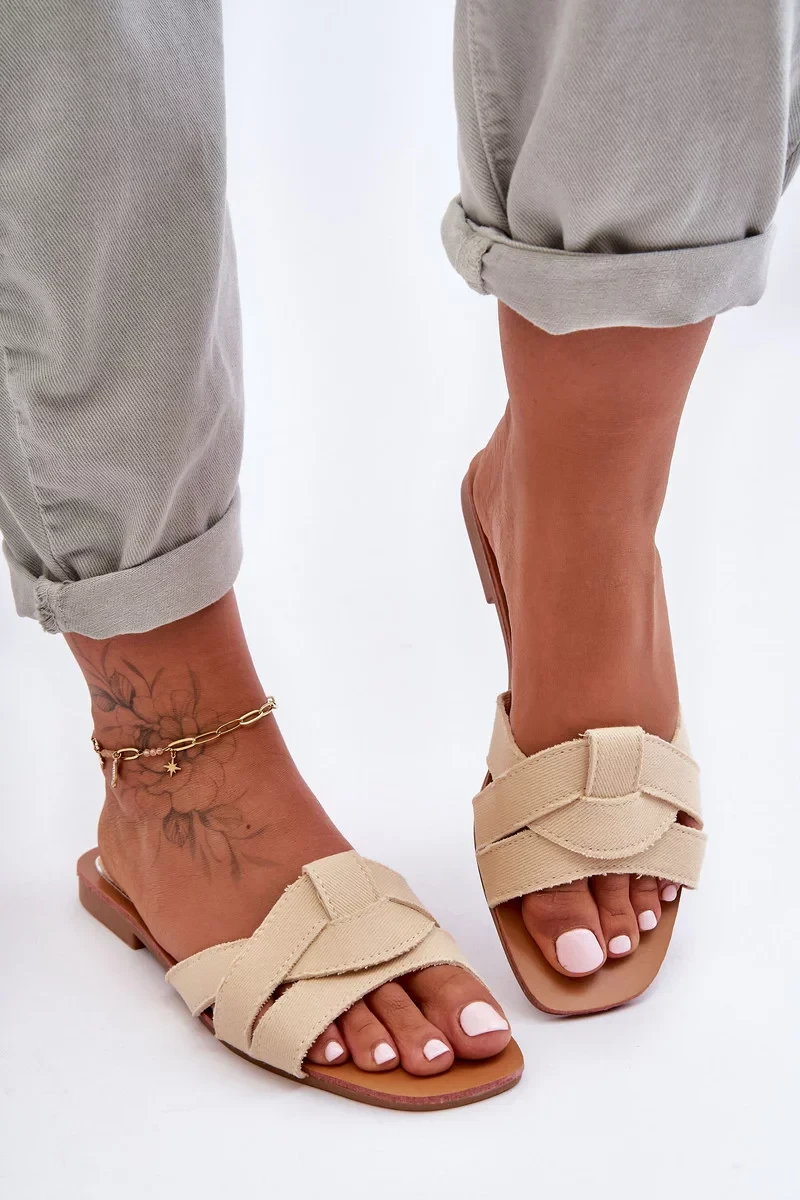 Dámské ploché sandály s gumovou, protiskluzovou podešví budou skvěle fungovat při každodenním nošení. Horní část je vyrobena z textilního materiálu a vložka z kombinace plastu a materiálu. Tento klasický model je charakterizován propletenými pásky. Tento model poskytuje vysokou pohodlnost, i v nejteplejších dnech! Při výběru velikosti se řiďte tabulkou velikostí.