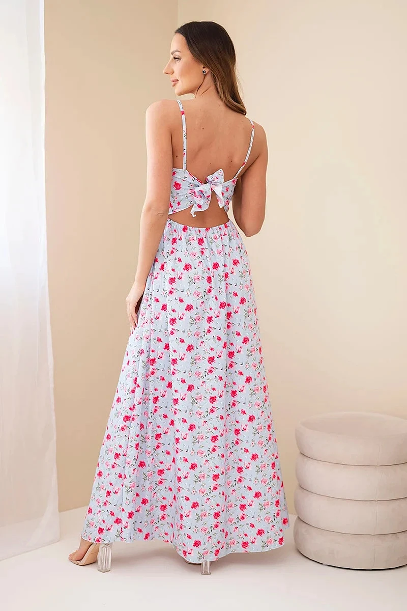 Dámské maxi šaty s květinovým vzorem na ramínkách se zavazováním na zádech modré