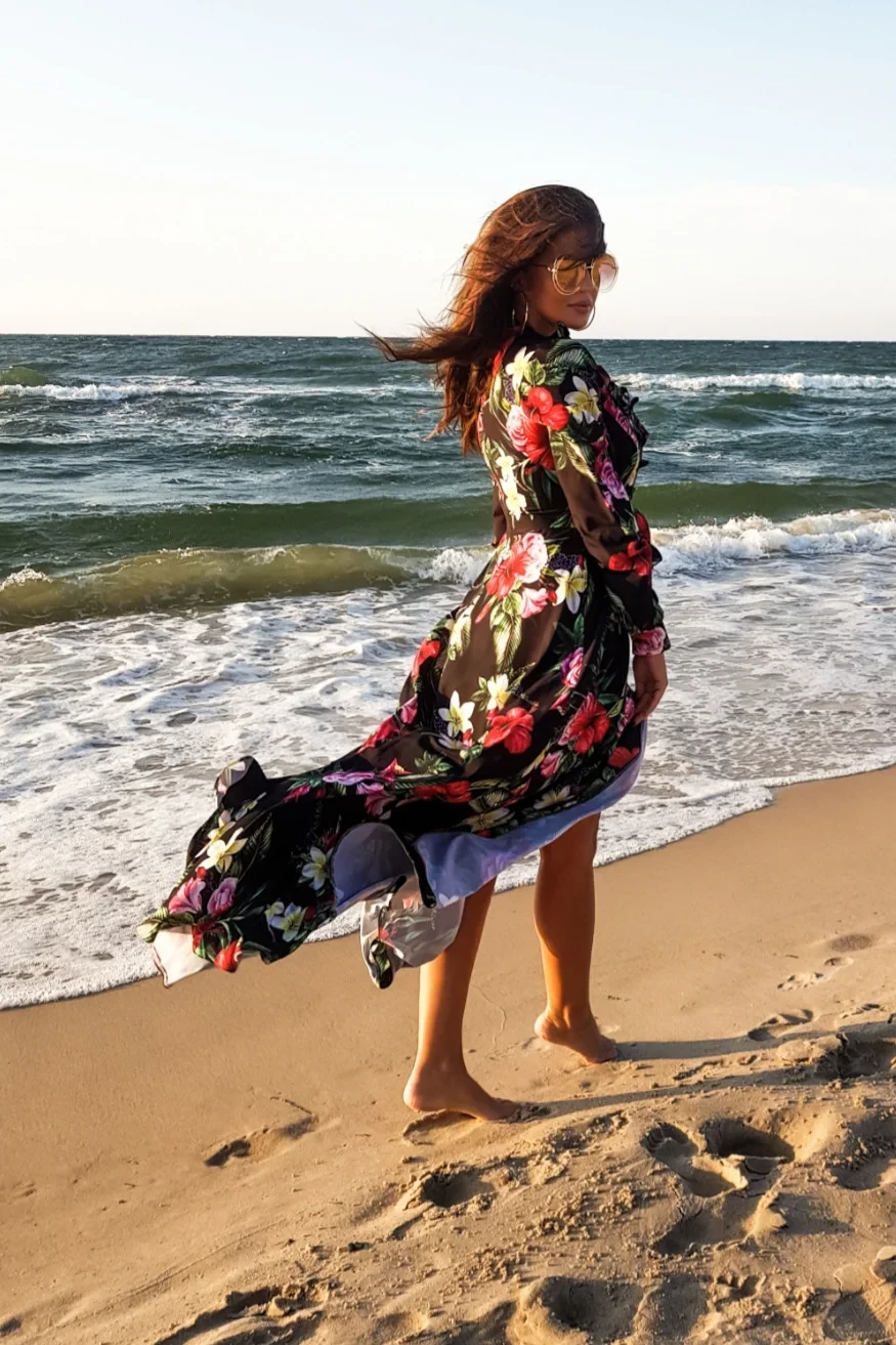 Dámské maxi šaty s výstřihem a se vzorem květů model 20914037 - numoco