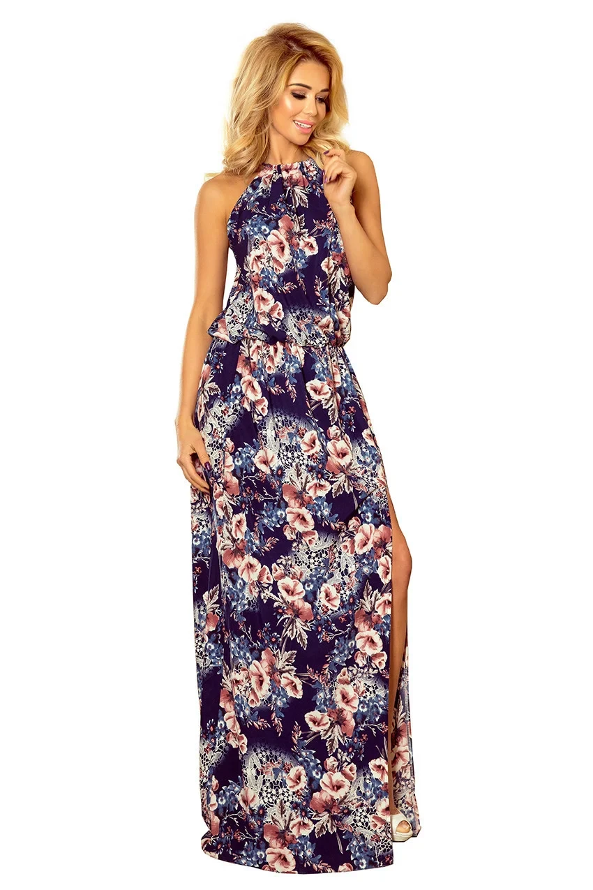 Dámské maxi šaty s vzorem za krkem a rozparkem model 21371139 - numoco