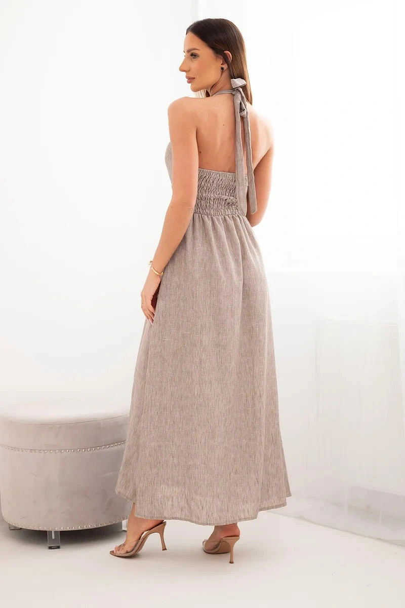 Dámské maxi viskózové šaty vázané na krku s ozdobnou přezkou fango