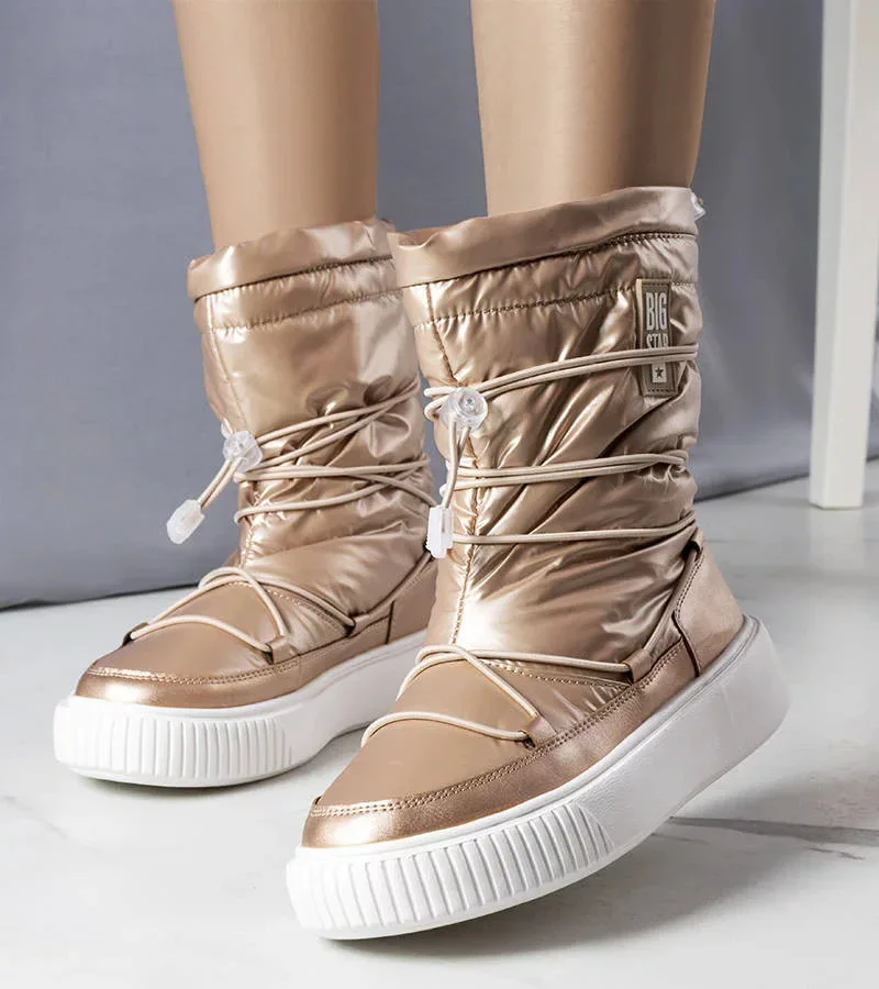 Dámské metalické INT1783B zateplené sněhule Béžová - Big Star