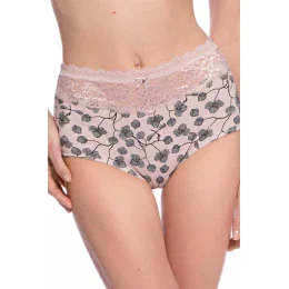 Dámské bavlněné kalhotky. V balení po 2 kusech, jeden hladký, druhý s potiskem, vzadu zakončený jemnou krajkou.