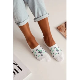Dámské mikro-kotníkové bavlněné ponožky Jahody – bílé