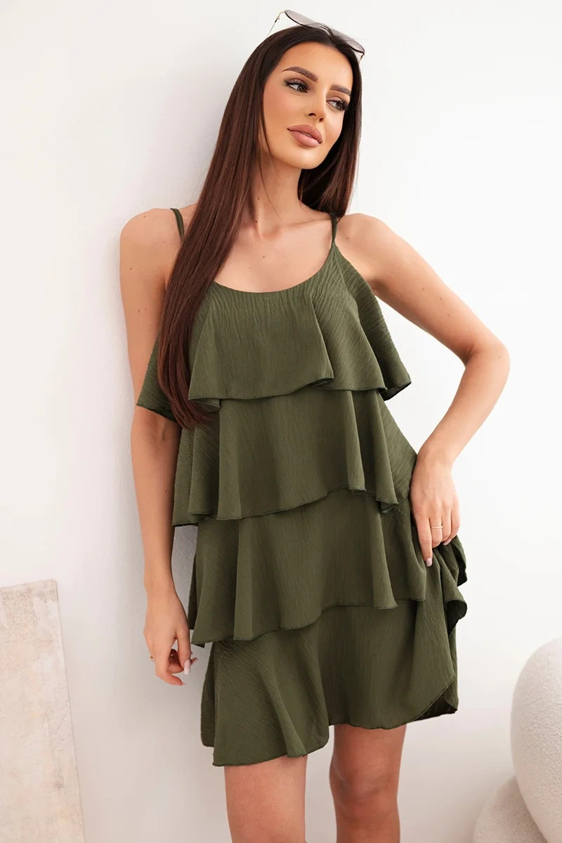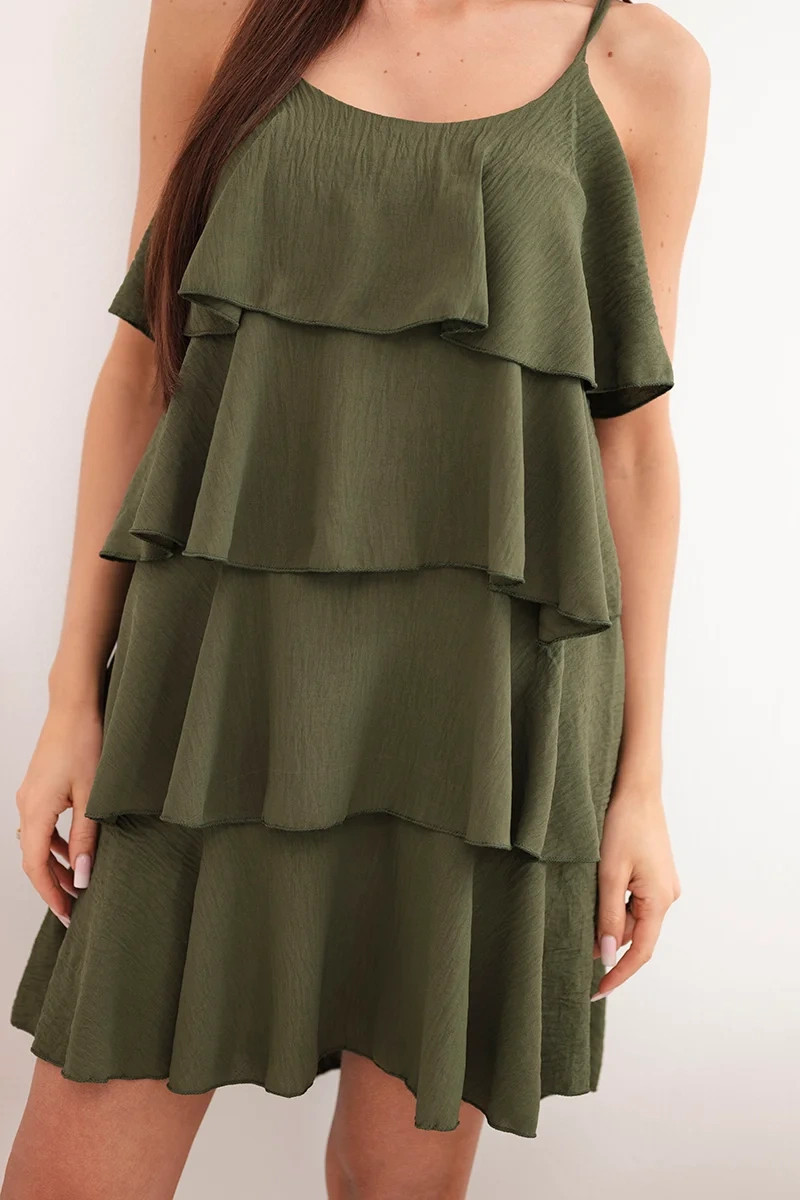 Dámské šaty na ramínkách jsou mimořádně ženskou a stylovou volbou, která se skvěle hodí do letních outfitů. Model vyniká efektními volány uspořádanými ve vrstvách, které šatům dodávají lehkost, objem a módní charakter. Volný střih zajišťuje, že se šaty krásně přizpůsobí postavě, zvýrazní její přednosti a zároveň poskytují pohodlí po celý den. Jsou ideální volbou na dovolenou, setkání s přáteli, procházky nebo letní výlety.