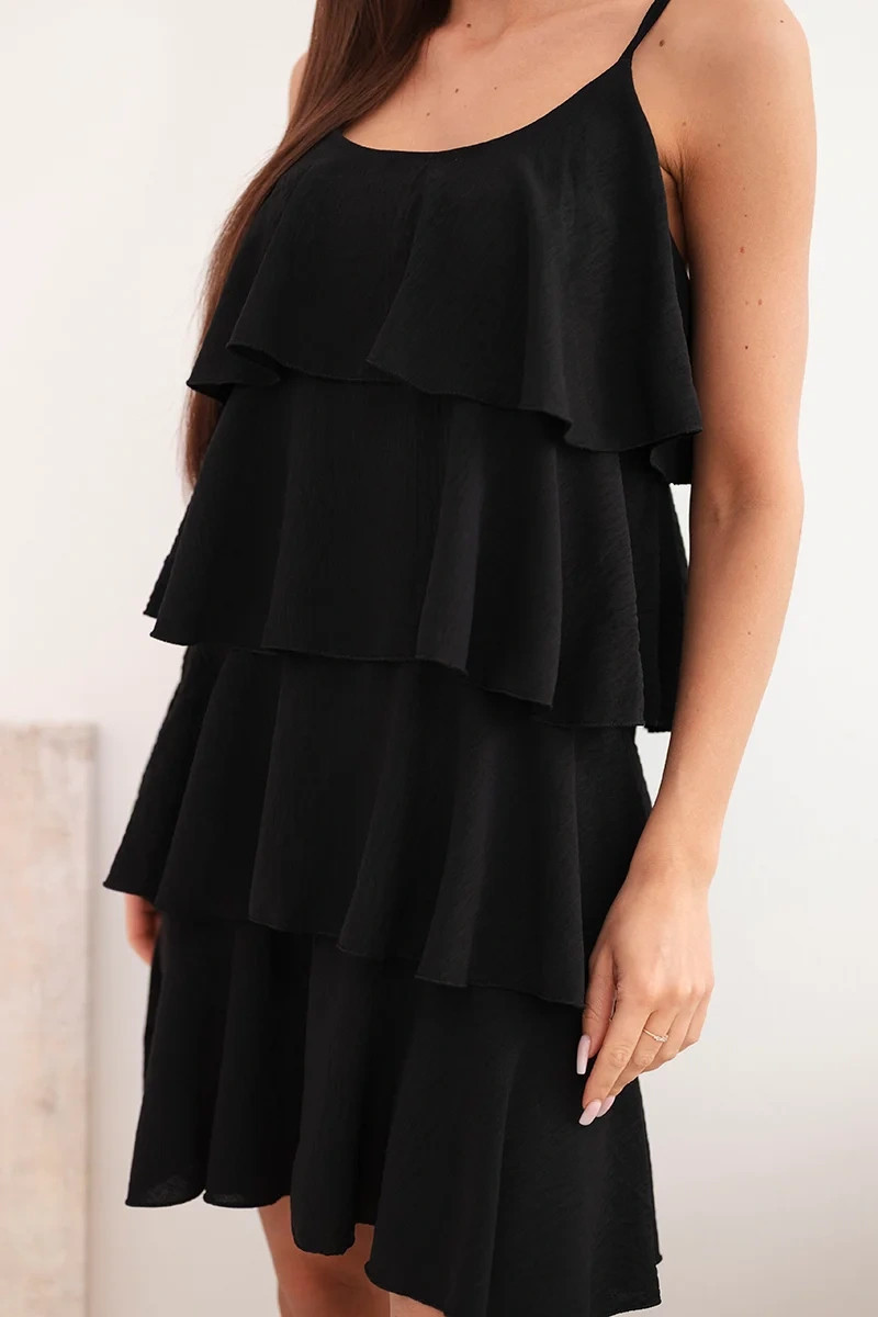 Dámské mini šaty na ramínkách s volány černá