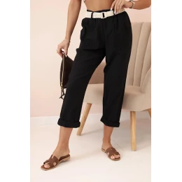 Dámské model 21035575 kalhoty s bavlnou a páskem černé - K-Fashion