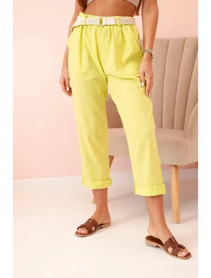 Dámské model 21035585 kalhoty s bavlnou a páskem kiwi - K-Fashion