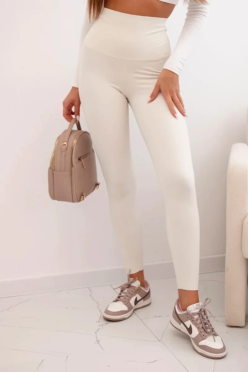 Dámské model 21043903 legíny s vysokým pasem světle béžové - K-Fashion