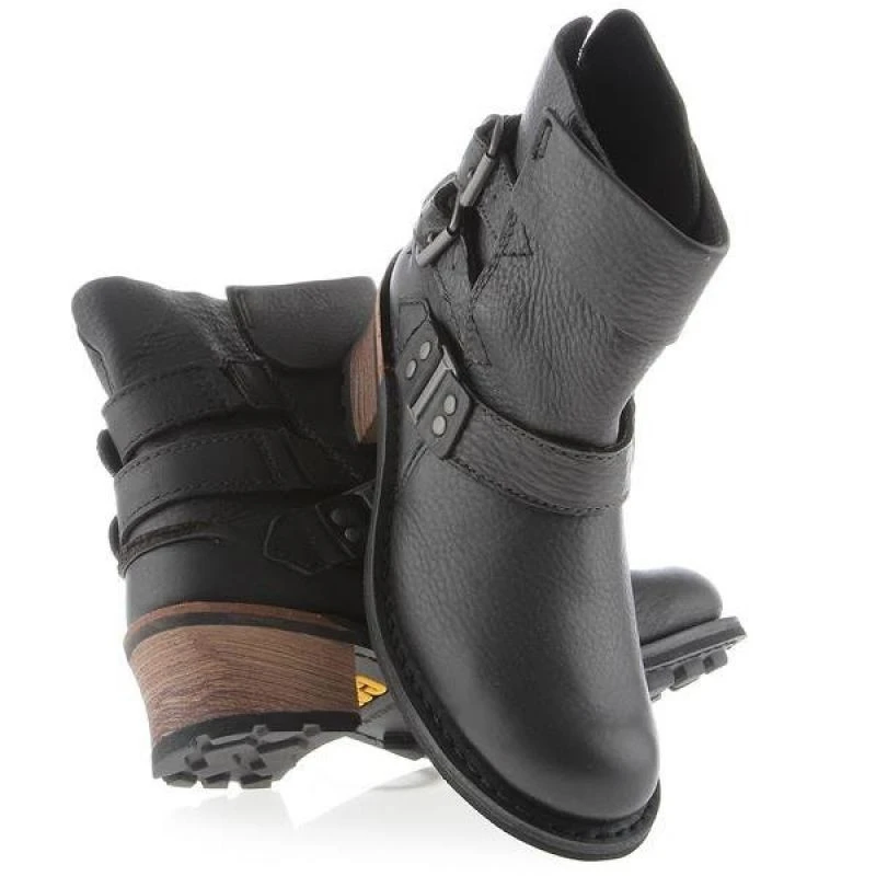 Tento model dámské obuvi má tři přezky, které mu dodávají undergroundový vzhled. Pevná podrážka a poměrně vysoký podpatek vám umožní cítit se sebejistě a dodají šmrnc každému outfitu. svršek z přírodní kůže podšívka z nylonu podrážka z PVC stélka z T892 stélka z EVA 3/4" Goodyear Welt Construction