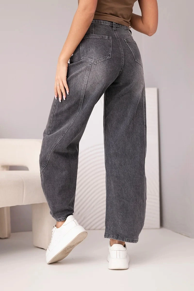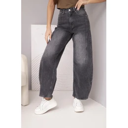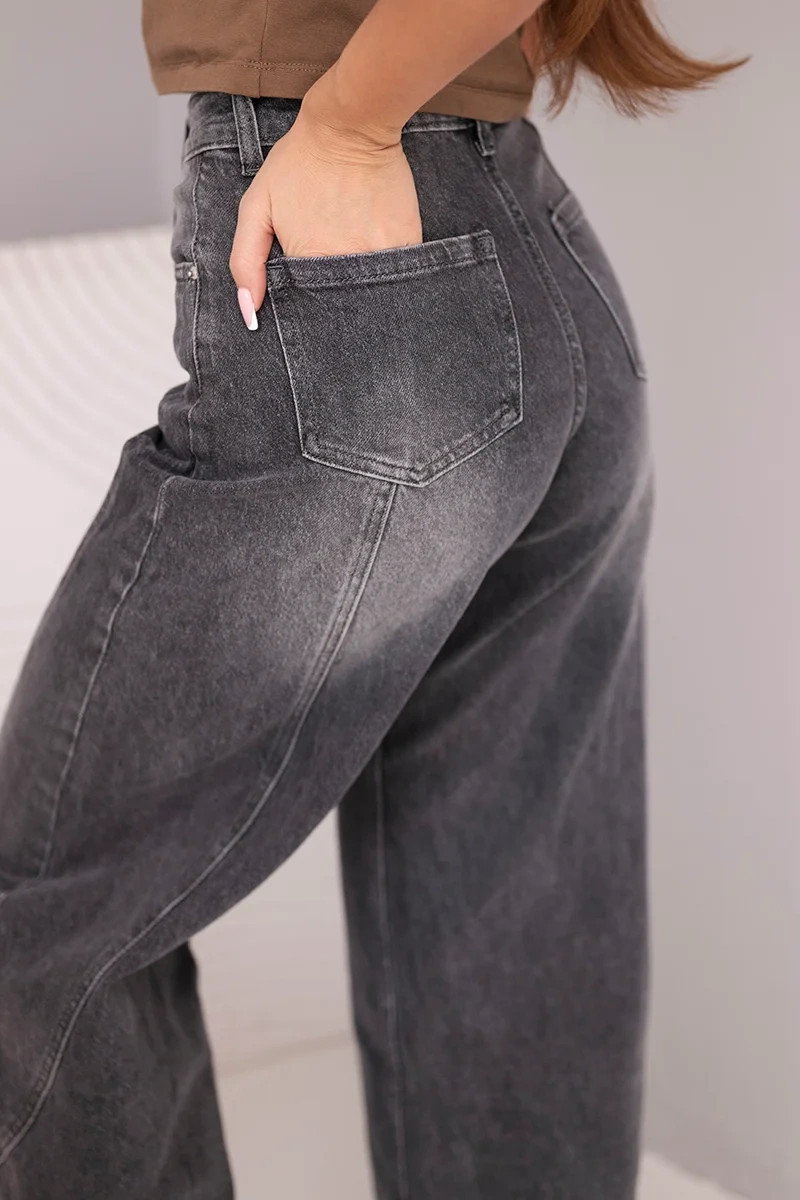 Dámské model 21951830 kalhoty Wide Leg s vysokým pasem a efektem praní černé - K-Fashion