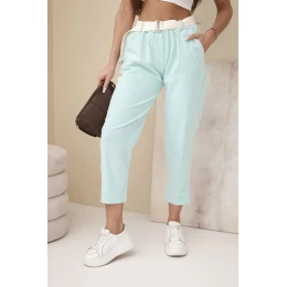 Dámské model 22002878 kalhoty s páskem mátové - K-Fashion