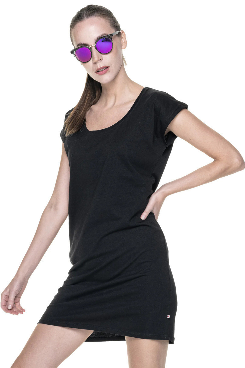 Tuniko-šaty volnějšího, pohodlného střihu. Materiál je single jersey. Ve výstřihu lemování. Šaty mají elastické, dvojité švy. Gramáž: 170g/m2.