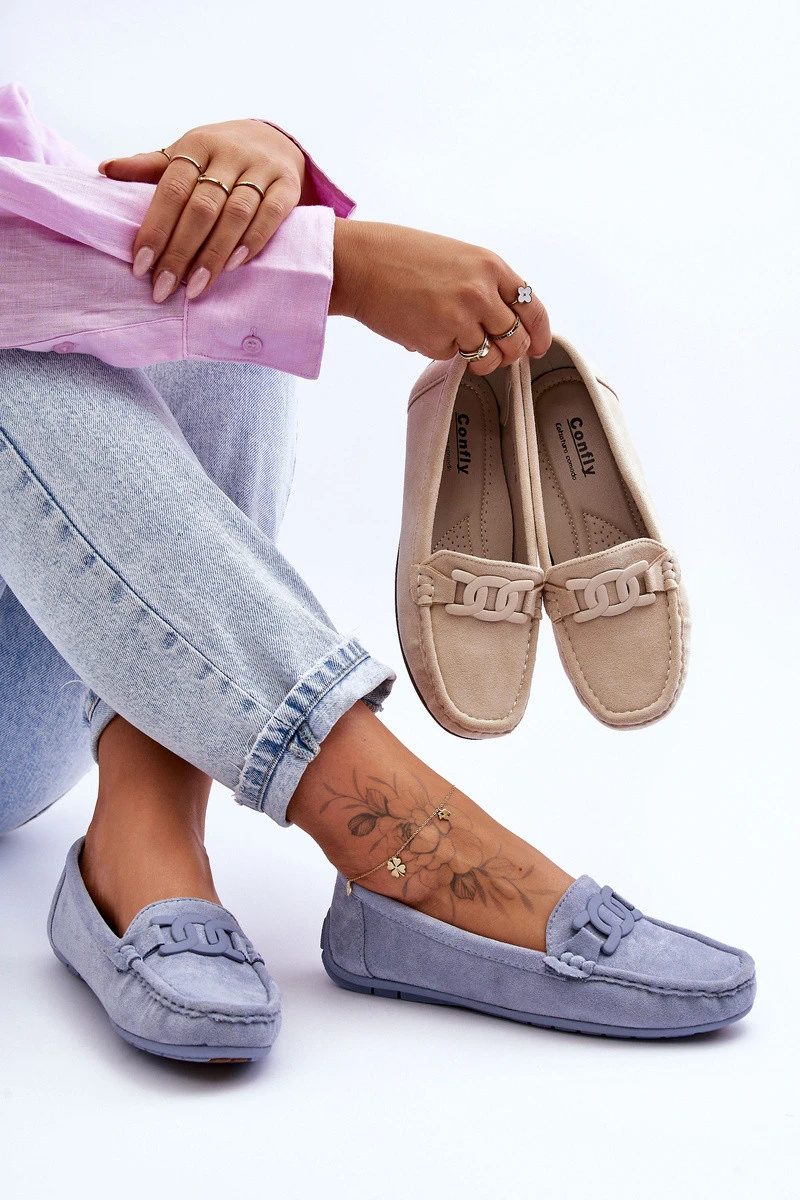 Dámské mokasíny by měly být součástí každé ženské skříně! Tento model je vyroben z příjemného eko semiše. Na přední straně je umístěna ozdoba z umělé hmoty. Mokasíny jsou osazeny protiskluzovou podrážkou. Měkká vložka z ekologické kůže zajistí pohodlí při nošení obuvi. Navíc je lehce perforovaná. Při výběru velikosti se řiďte tabulkou velikostí.