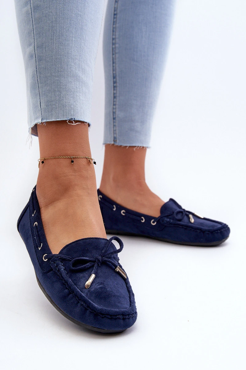 Dámské, klasické mokasíny byly vyrobeny z eko semiše. Tento model má na přední straně ozdobnou mašličku a procházející se přes strany šněrování. Mokasíny jsou umístěny na protiskluzové podrážce. Měkká vložka z eko kůže zajistí pohodlí při používání obuvi. Navíc je jemně perforovaná. Určitě byste je měli mít ve své obuvní sbírce! Při výběru velikosti se řiďte tabulkou velikostí.