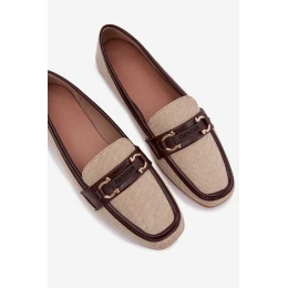 Dámské mokasíny Evelora v kombinaci hnědé a béžové barvy přinášejí elegantní a zároveň pohodlný styl vhodný pro každodenní nošení. Klasický střih je doplněn dekorativním prvkem na nártu, který dodává botám módní akcent bez ztráty praktičnosti. Tento model je ideální volbou pro ty, kdo hledají nadčasové mokasíny vhodné jak do práce, tak do města či na volný čas.
