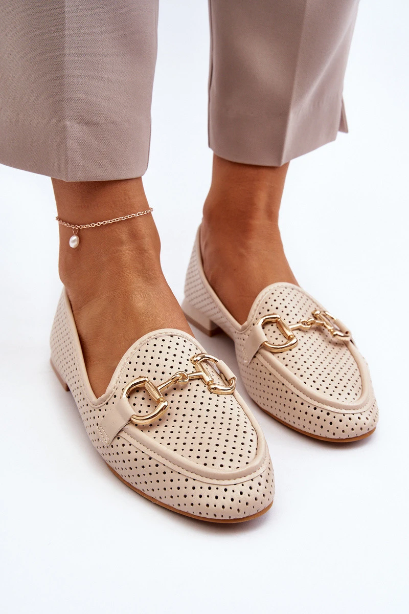 Dámské mokasíny na ploché podrážce s ozdobou béžové Iluvana