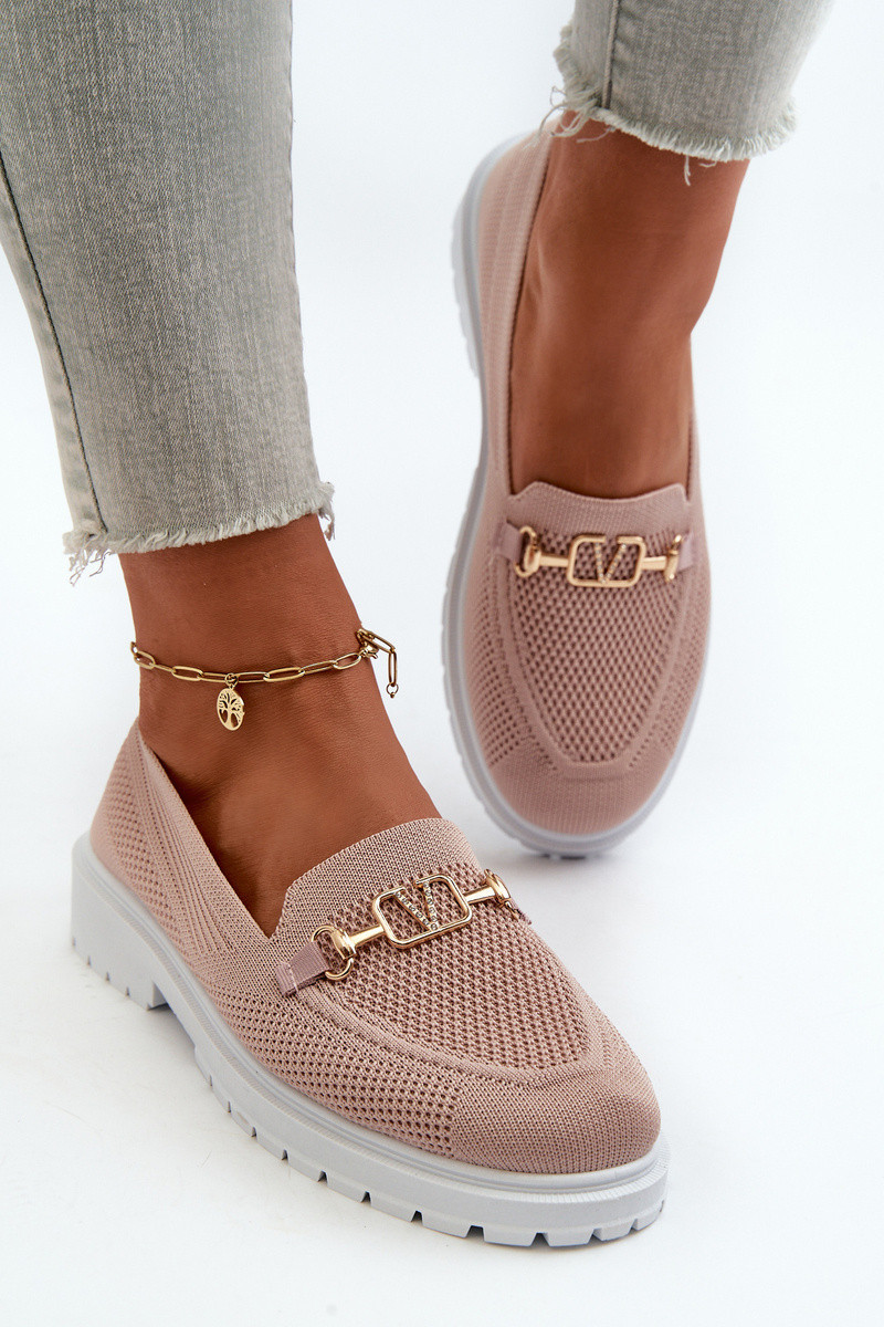 Dámské Mokasíny Na Ploché Podrážce S Zlatým Detailom Růžové Limentia