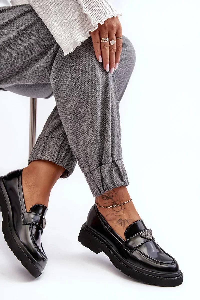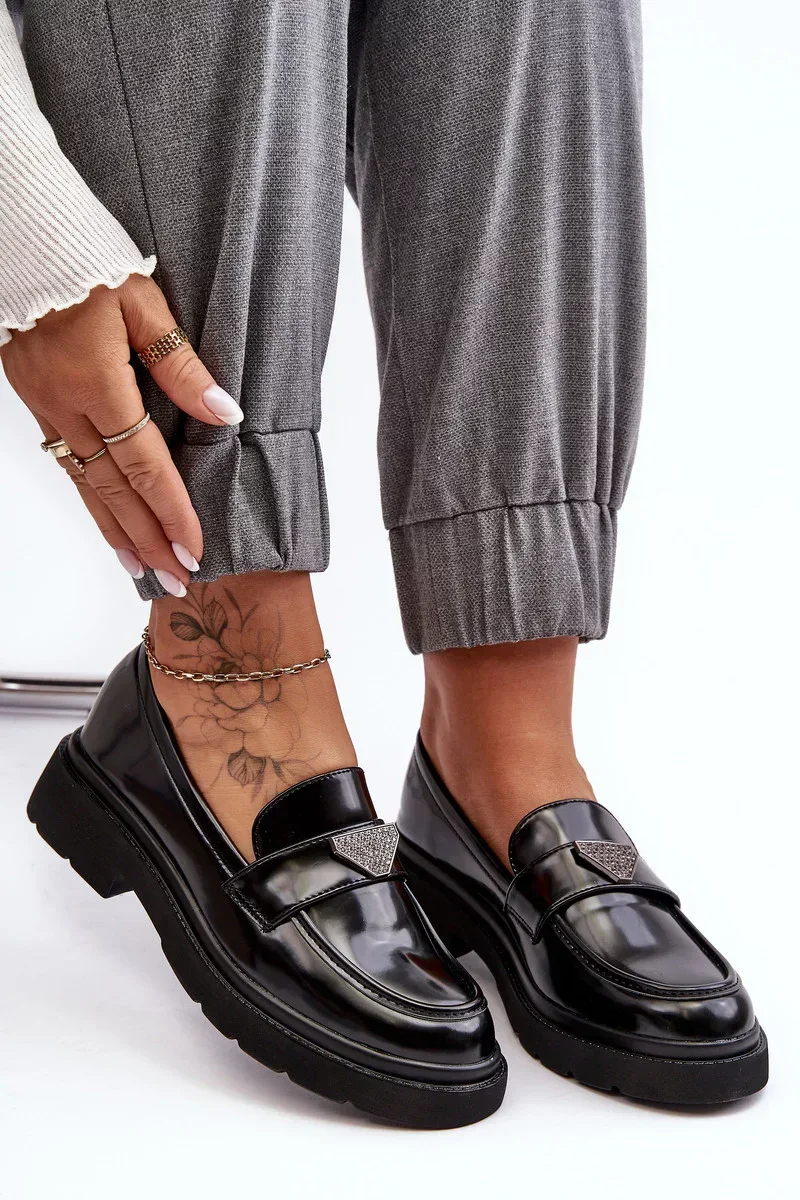 Klasické dámské boty, ideální pro podzimní styling! Vyrobeno z eko kůže. Nasazené na plochém podpatku. Na předním pásku je malá ozdoba. Zaoblené prsty. Měkká stélka z ekokůže zajišťuje pohodlí při používání. Rozhodně byste je měli mít! Při výběru velikosti se řiďte tabulkou velikostí.
