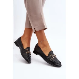 Dámské mokasíny na plochém podpatku s ozdobou, černá Iluvana
