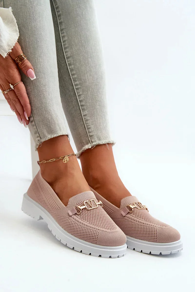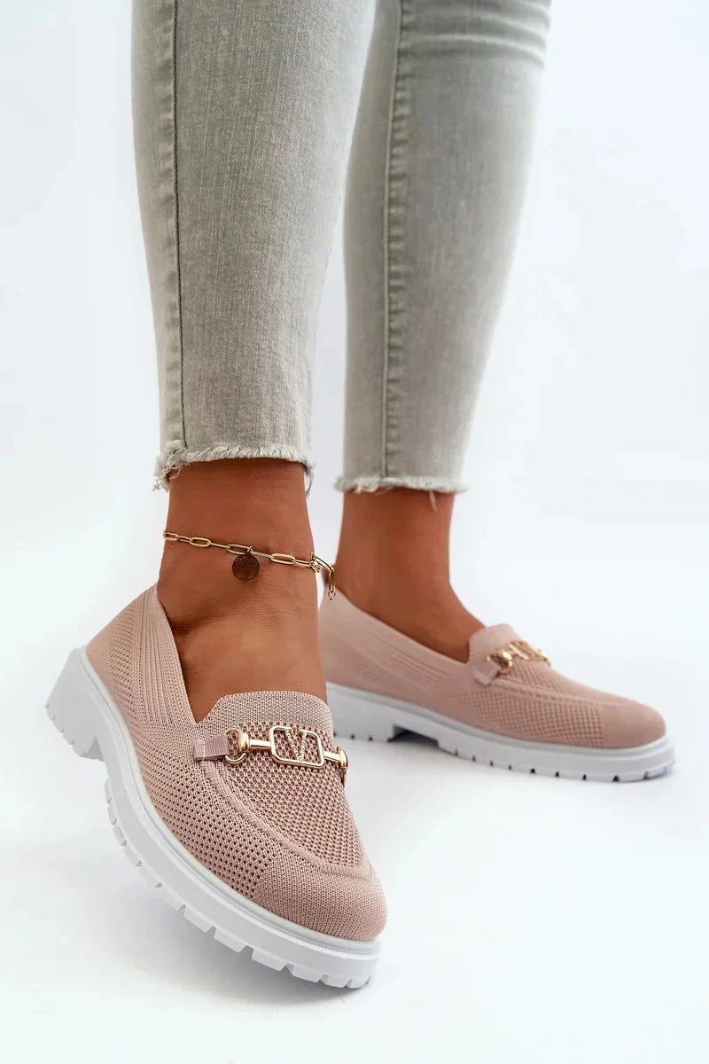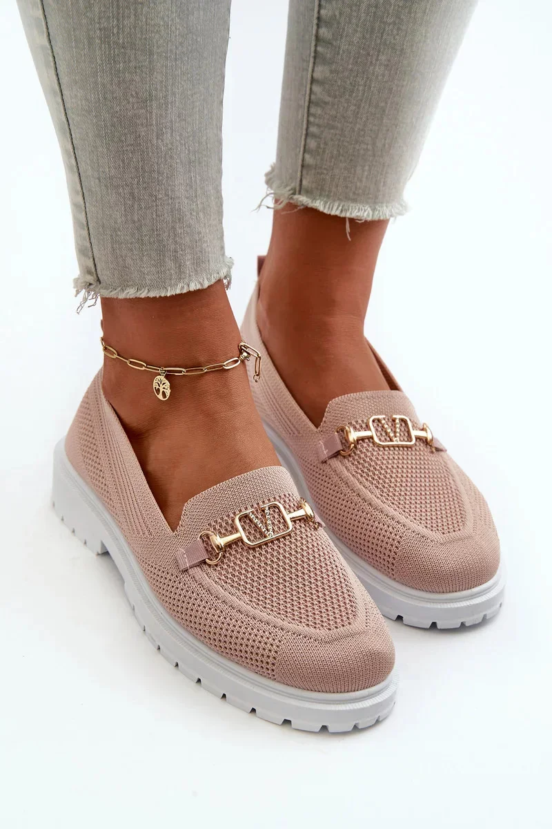 Dámské mokasíny na plochém podpatku se zlatými detaily, růžová Limentia