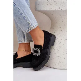 Dámské mokasíny na podpatku model 21038454 Černá Step in style - SWEET SHOES