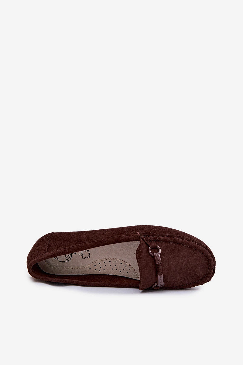 Dámské mokasíny z eko semiše jsou stylovou a pohodlnou volbou na každý den. Plochý tvar zajišťuje komfort nošení, což činí model ideální na dlouhodobé nošení. Vepředu je ozdobný detail, který dodává celku elegantní charakter a zdůrazňuje módní vzhled obuvi. Vložka z přírodní kůže zvyšuje pohodlí a přizpůsobení tvaru nohy. Ideální volba pro ženy, které ocení klasiku, pohodlí a jemnou eleganci v každodenním stylu. Při výběru velikosti se řiďte tabulkou velikostí.