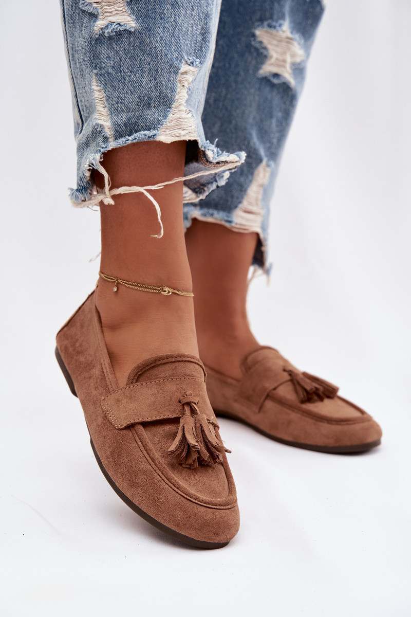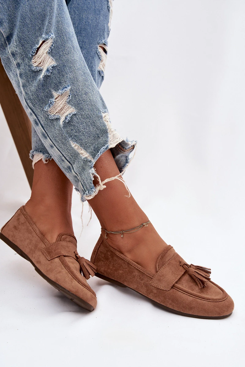 Dámské mokasíny ploché s třásněmi hnědé model 21919041 - Boto