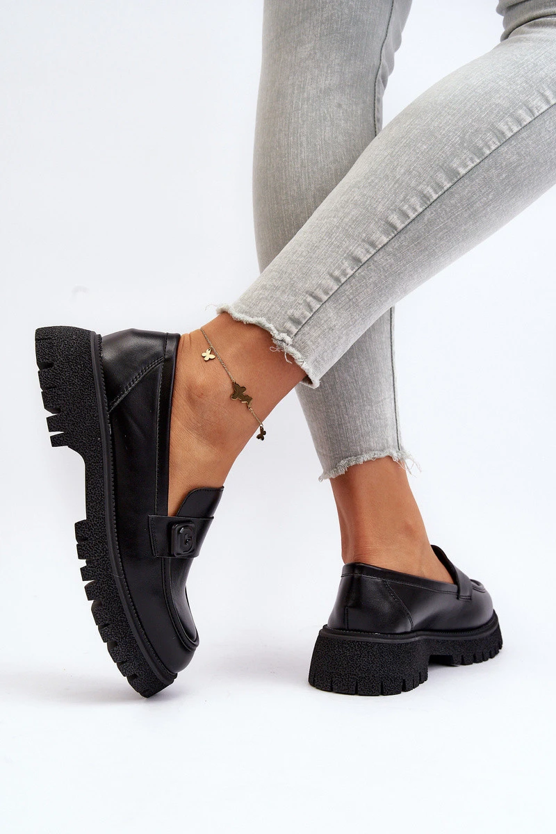 Stylové mokasíny vyrobené z ekologické kůže. Vsazené na masivní, ploché podrážce. Podrážka s drážkami skvěle izoluje od nerovností povrchu. Špička ozdobena páskem. Zaoblené špičky. Ideální pro různé jarní stylizace! Při výběru velikosti se řiďte tabulkou velikostí.