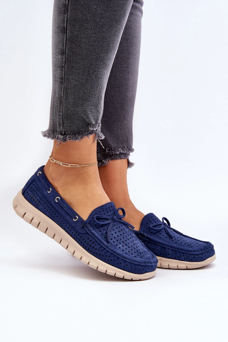 Dámské mokasíny s mašlí tmavě modré model 21650293 - VINCEZA