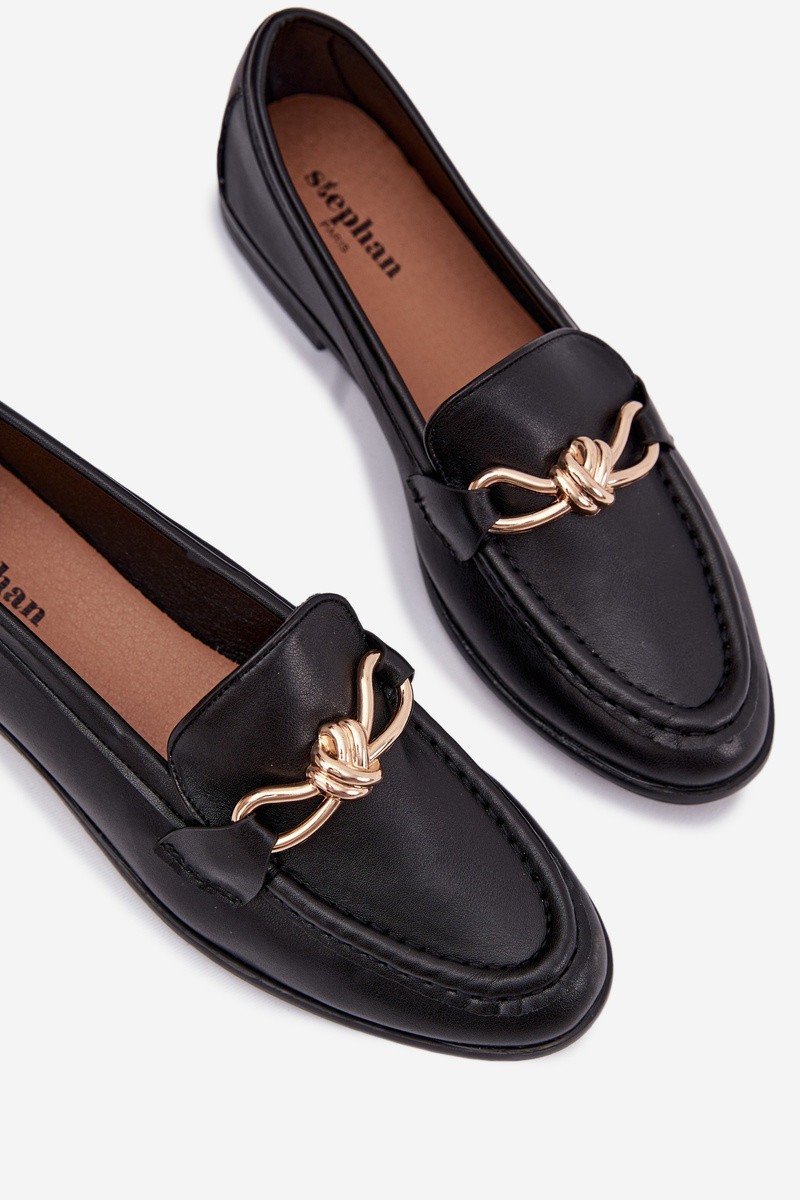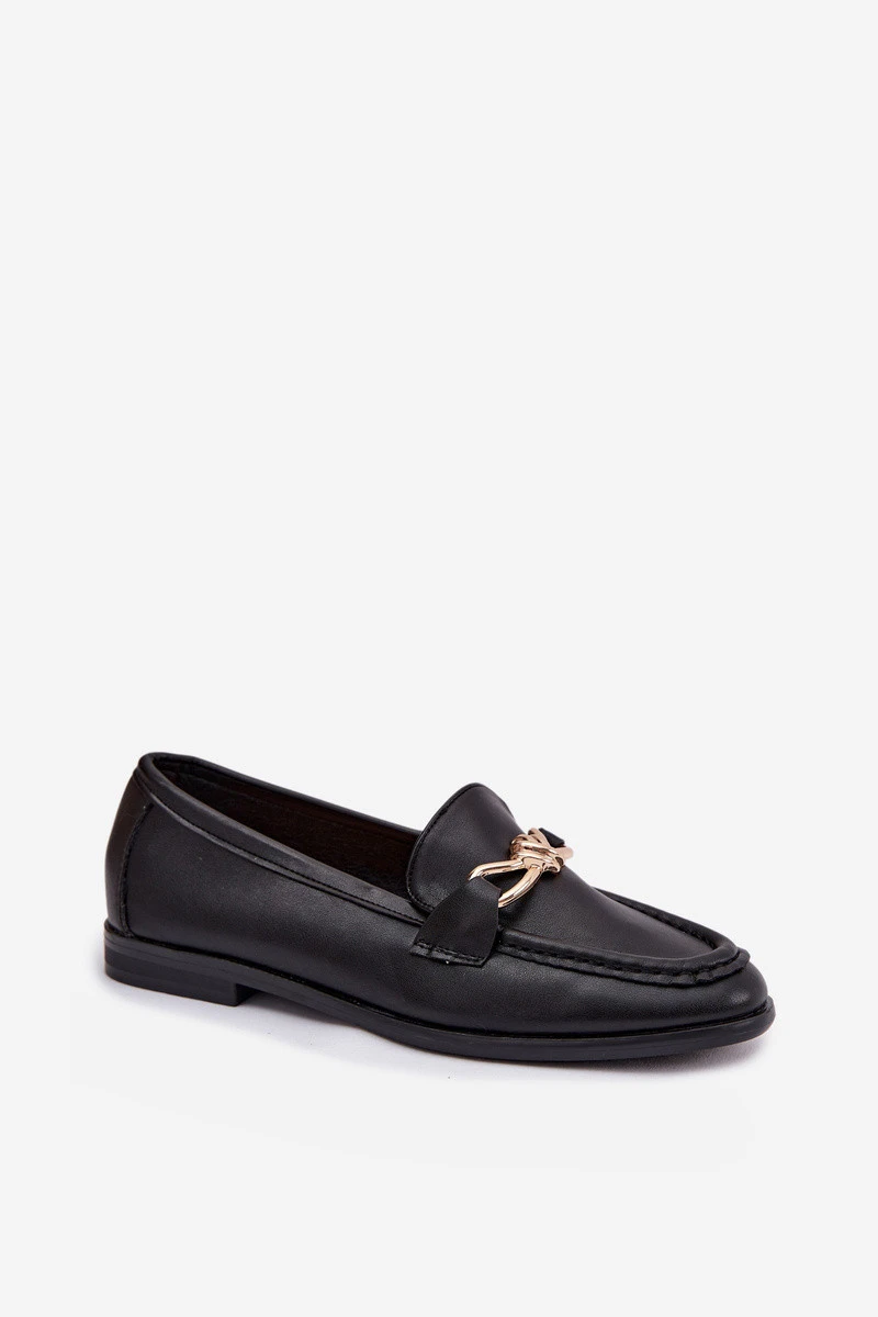 Klasické dámské loafersy vyrobené z eko kůže jsou univerzální volbou pro každodenní a elegantní stylizace. Jednoduchý, nadčasový střih je doplněn zlatým detailem vpředu, který dodává obuvi eleganci a stylový charakter. Model zajišťuje pohodlí při nošení a skvěle se hodí do práce, na schůzky nebo na každodenní vycházky. Loafersy se snadno kombinují jak s džíny, tak s kalhotami nebo sukní, čímž vytvářejí upravený a módní vzhled. Při výběru velikosti se řiďte tabulkou velikostí.