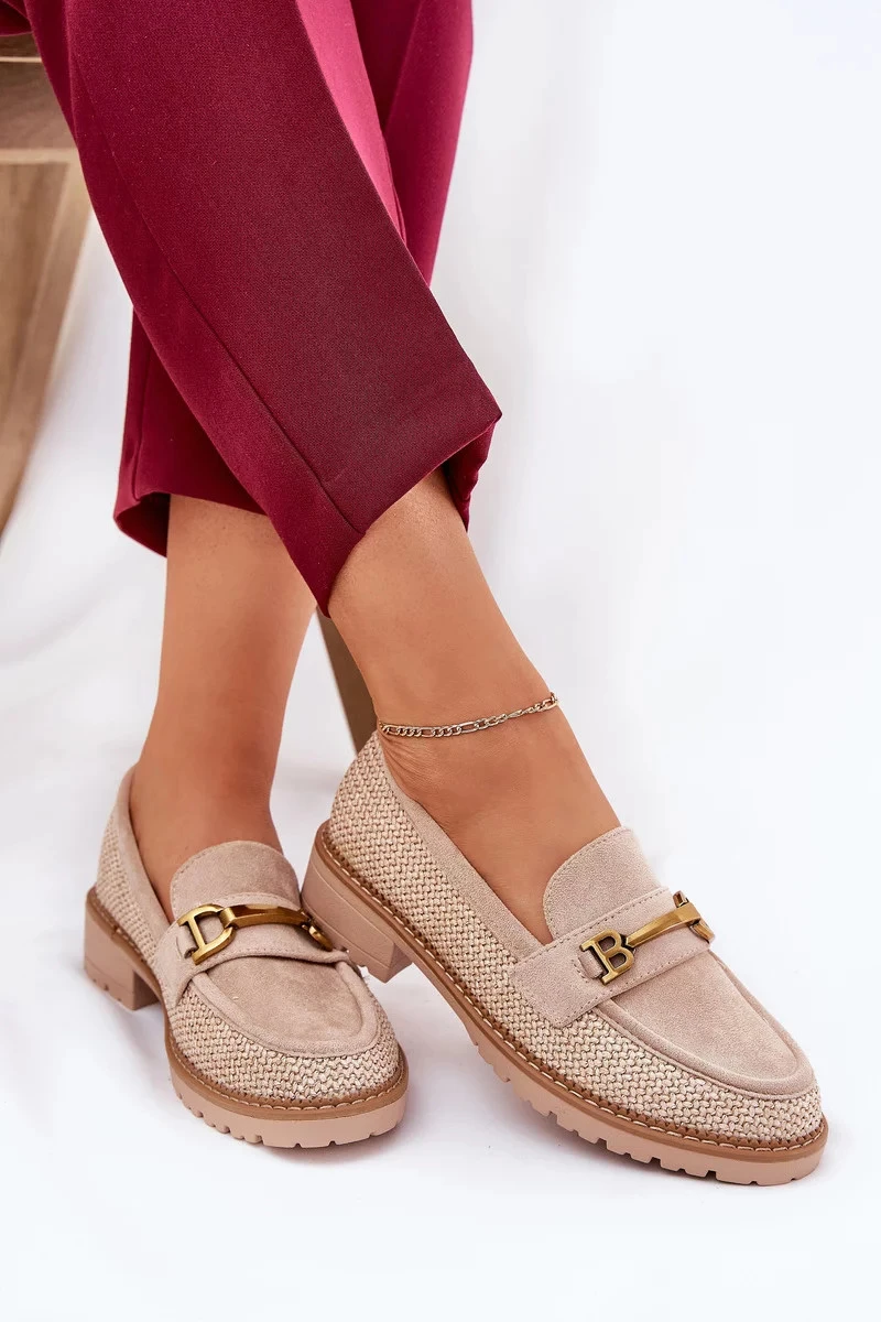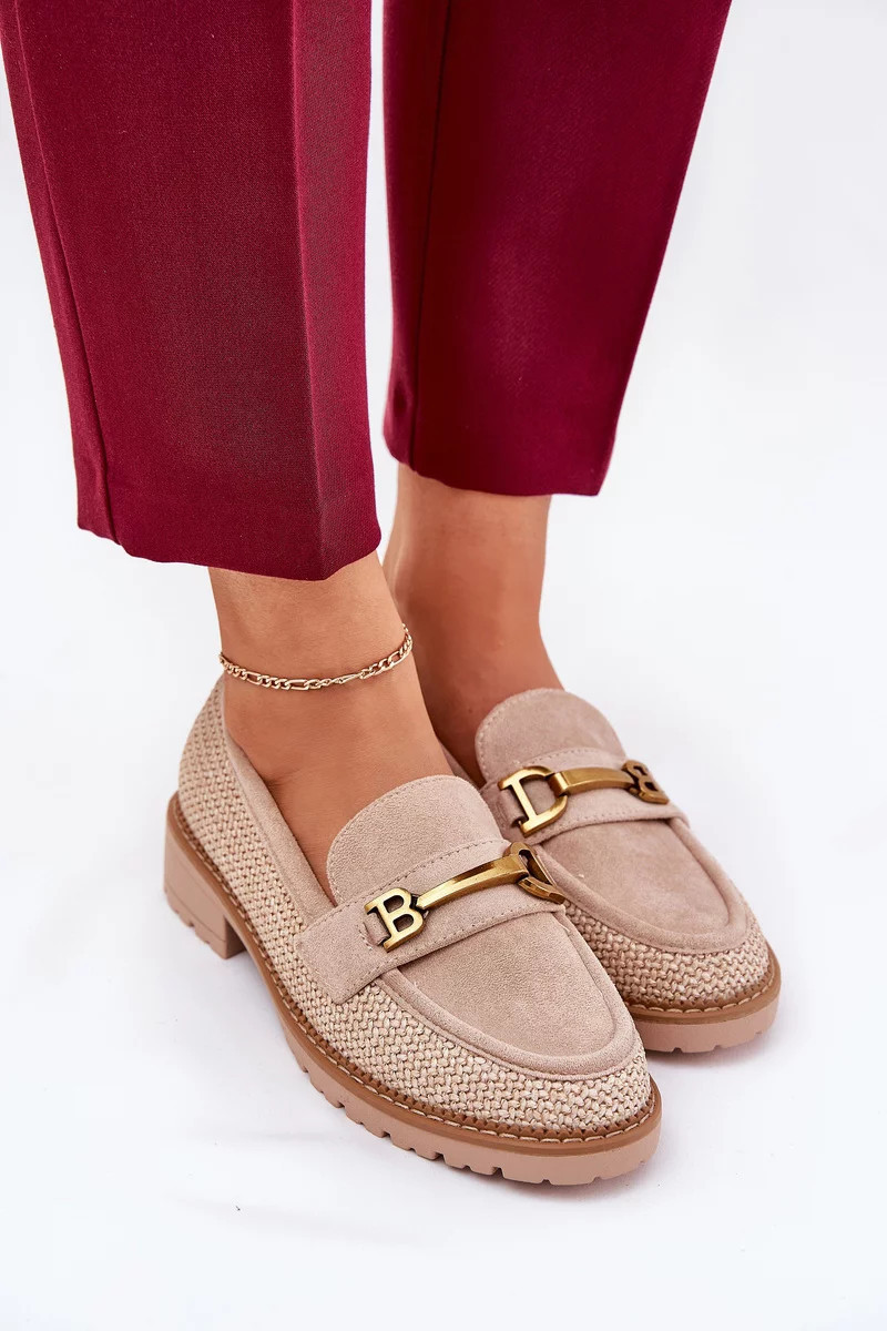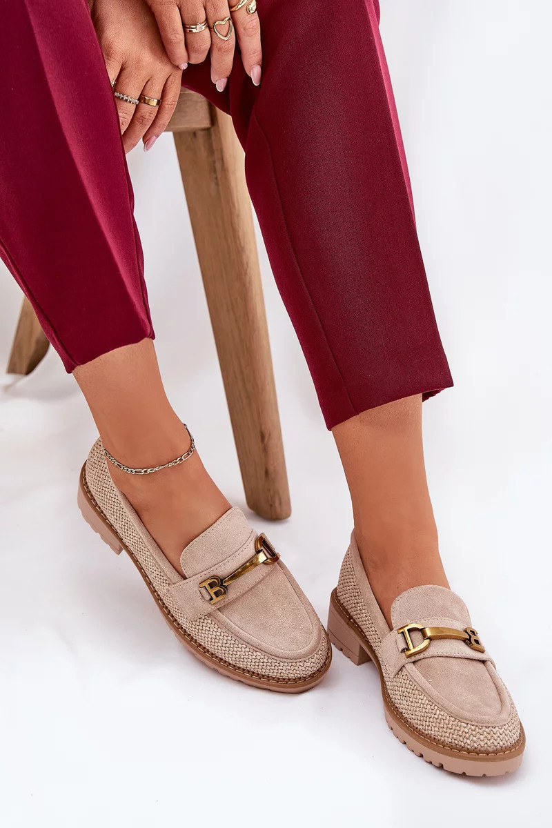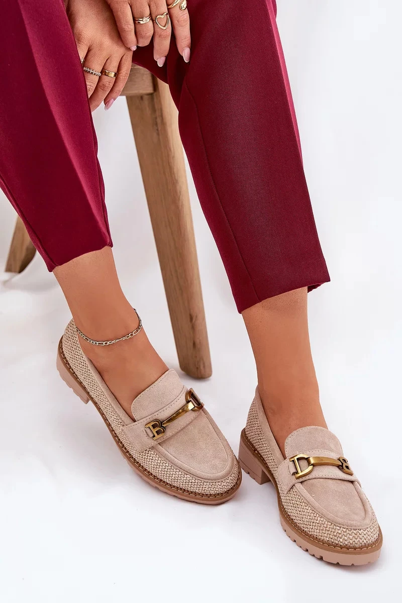 Dámské mokasíny s pletením a zlatým detailem Seffolia – béžové
