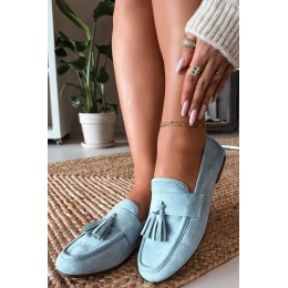 Dámské mokasíny s plochou podrážkou a třásněmi, modré Marilisse